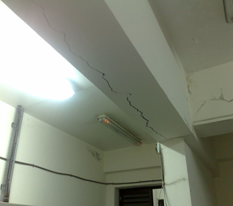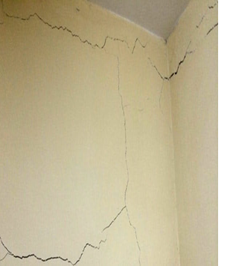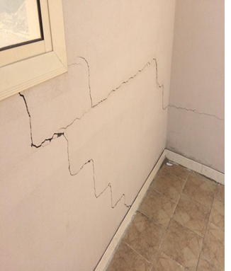 صور لشروخ في جدران المباني بسبب الهبوط :